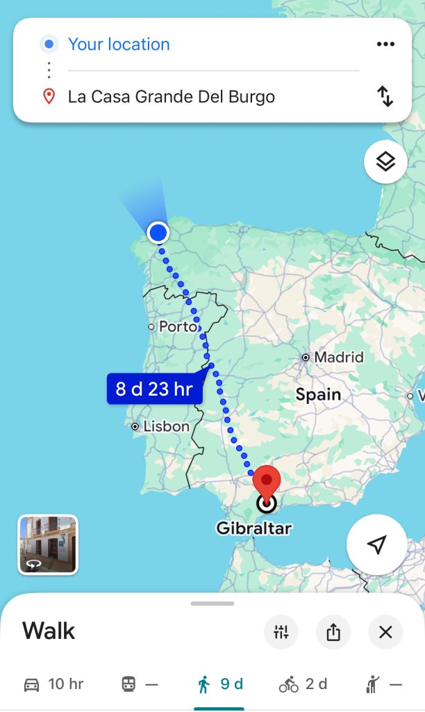 A quick update from Mary: We have What’sApp updated and operational! About a half hour ago I received a text message from her while I was still slumbering… managed to find What’s App on my phone from years ago, somehow managed to update it and establish a through connection to somewhere in Spain. This is her jet-lag day. And she is going to try to find someone at her next lodging to take care of her trappings whilst she is off to do other things. Reportedly pretty tired. Her. Not me. Well, me too…